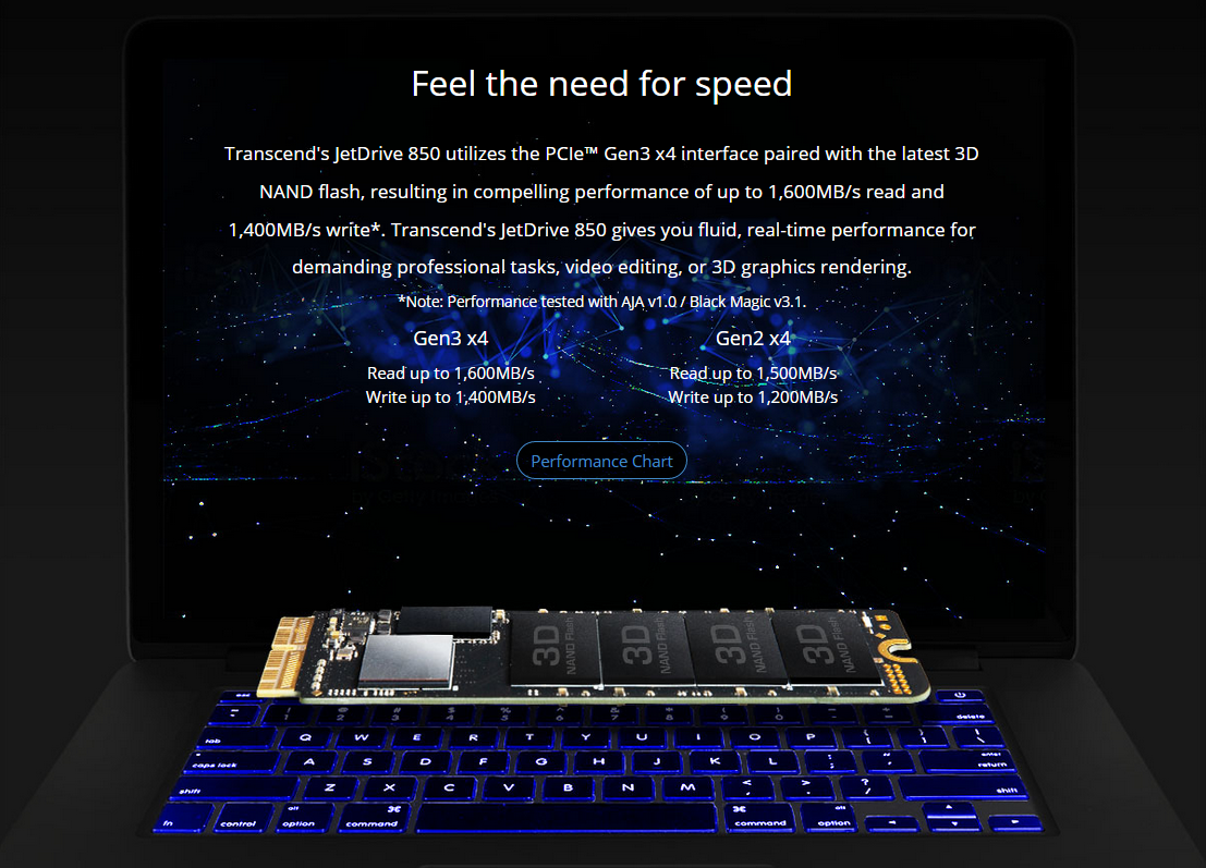 Is your Mac getting sluggish? Transcend’s JetDrive 850* SSD utilizes the PCIe™ Gen3.0 interface to unleash next-generation performance, instantly revitalizing your MacBook Pro, MacBook Air, Mac mini, or Mac Pro!